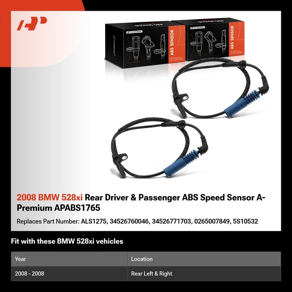 A-Premium Aftermarket ABS Speed Sensor: Ideal for Trucks, Cars, and VansA-Premium ABS Speed Sensor is designed to meet the unique demands of trucks, cars, and vans. Our expertly crafted replacements come with a 3-Year unlimited mileage warranty, guaranteeing reliability across a wide range of vehicles. Use our Vehicle Selector to find the right ABS Speed Sensor for your needs.